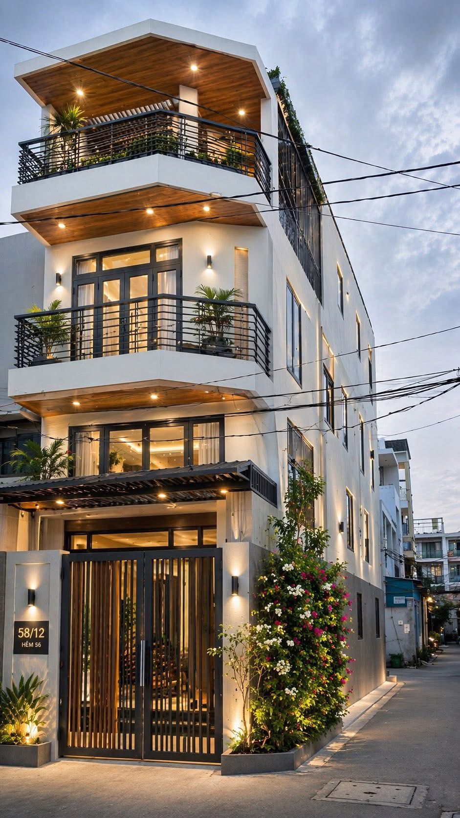 Đúc kiên cố 1 lửng 2 lầu, 4 phòng ngủ, 4 wc, sân thượng trước
